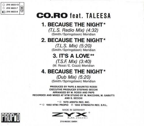 | 4) | Because The Night -Dub Mix | 5:03 |