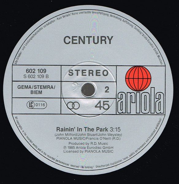 Record Company: Ariola Eurodisc GmbH