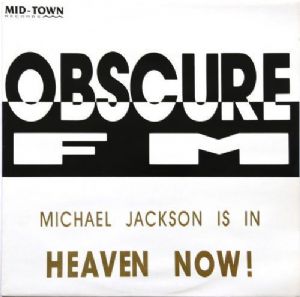 Obscure FM - Michael Jackson Is In Heaven Now! Obscure FM - Michael Jackson Is In Heaven Now! Tracklist: A1) Michael Jackson Is In Heaven Now! -Club 4:34 A2) Michael Jackson Is In Heaven Now! -Radio 2:27 A3) Michael Jackson Is In Heaven Now! -Take Outs 0:22 B) Japan Is No. 1 3:25 Companias, etc Copyright -c: Mid-Town Records Published By: Mid-Town Publishing Holland Distributed By: IMC Distributed By: Usa Antwerpen Lacquer Cut At: The Masters Códigos e identificadores Rights Society: STEMRA Matrix / Runout: Etched, A side runout HCP873079 91116 A Matrix / Runout: Etched, B side runout MID 91116-B HCB 873079. Barcode: none
