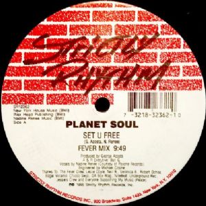 Planet Soul - Set U Free Planet Soul - Set U Free Tracklist: A Set U Free -Fever Mix 9:49 B1 Set U Free -Planet V Mix 4:49 B2 Set U Free -Mars Mix 6:19 Companias, etc Phonographic Copyright -p: Strictly rhythm Records, Inc. Copyright -c: Strictly rhythm Records, Inc. Published By: New York House Music Published By: Wax Head Publishing Published By: Nadine Renee Music Mastered At: Europadisk Pressed By: Europadisk Códigos e identificadores Barcode: 732183236210 Matrix / Runout: Runout Etchings Side A SR-12362-A EUROPADISK DMM NY USA 12145 & Matrix / Runout: Runout Etchings Side B SR-12362-B EUROPADISK DMM NY USA 12145 & Rights Society: BMI
