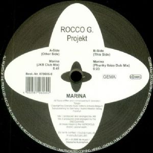 Rocco G. Projekt - Marina Rocco G. Projekt - Marina Tracklist: A Marina -JKB Club Mix 6:41 B Marina -Phunky Ibiza Dub Mix 6:23 Códigos e identificadores Barcode: 4002587060602 Other: Label Code LC 04893 Other: Rights Society GEMA