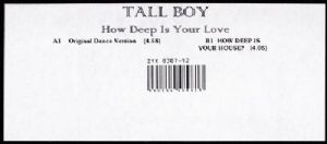 Tall Boy - How Deep Is Your Love Tall Boy - How Deep Is Your Love Tracklist: A) How Deep Is Your Love -Original Dance Version 4:58 B) How Deep Is Your House? 4:05 Códigos e identificadores Barcode: Text 090204 489817 Barcode: Scanned 090204489817 Matrix / Runout: Runout Side A ZYX 8307-12-A1 Matrix / Runout: Runout Side B ZYX 8307-12-B1