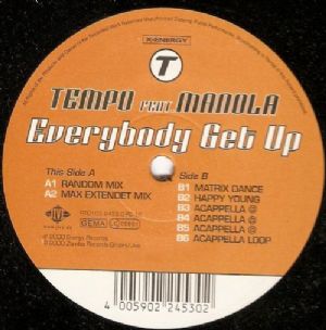 Tempo feat.Manola - Everybody Get Up Tempo feat.Manola - Everybody Get Up Tracklist: A1 Everybody Get Up -Random Mix A2 Everybody Get Up -Max Extendet Mix B1 Everybody Get Up -Matrix Dance B2 Everybody Get Up -Happy Young B3 Everybody Get Up -Acapella A B4 Everybody Get Up -Acapella B B5 Everybody Get Up -Acapella C B6 Everybody Get Up -Acapella Loop Códigos e identificadores Barcode: 4 005902 245302